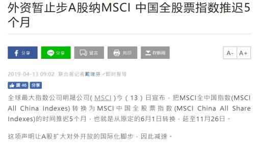 虚惊!MSCI推迟两中国指数转换 A股纳入因子提升节奏不受影响
